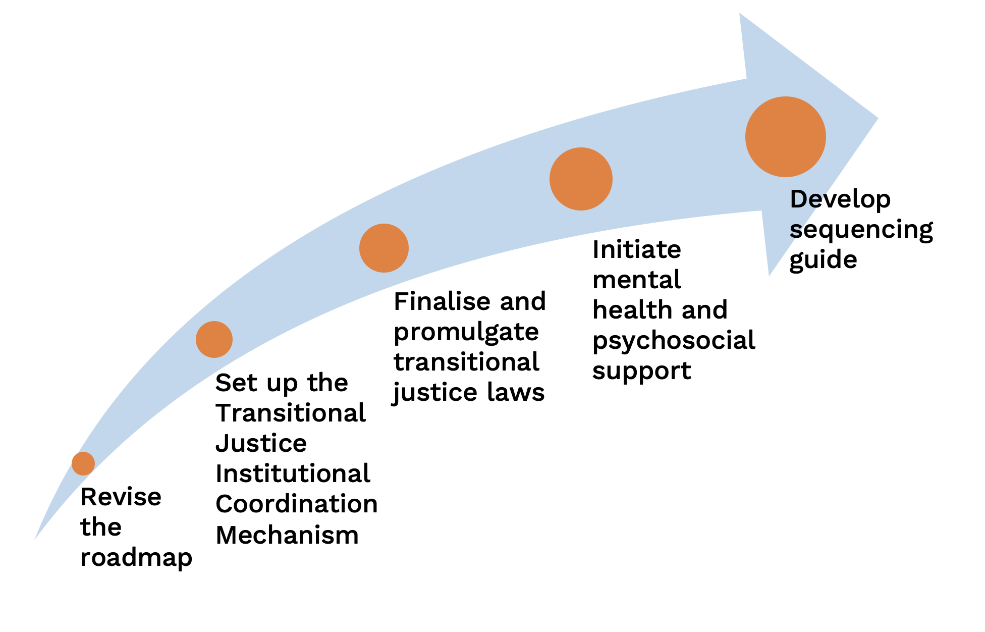 The pause should enable the Justice Ministry to strengthen its internal technical capacity, establish a dedicated department for transitional justice, re-engage regional stakeholders, refine the sequencing and prioritisation of activities, and develop a more transparent and inclusive roadmap. This would enhance public confidence and ensure a more coherent, coordinated, and well-grounded resumption of the process once it formally restarts.