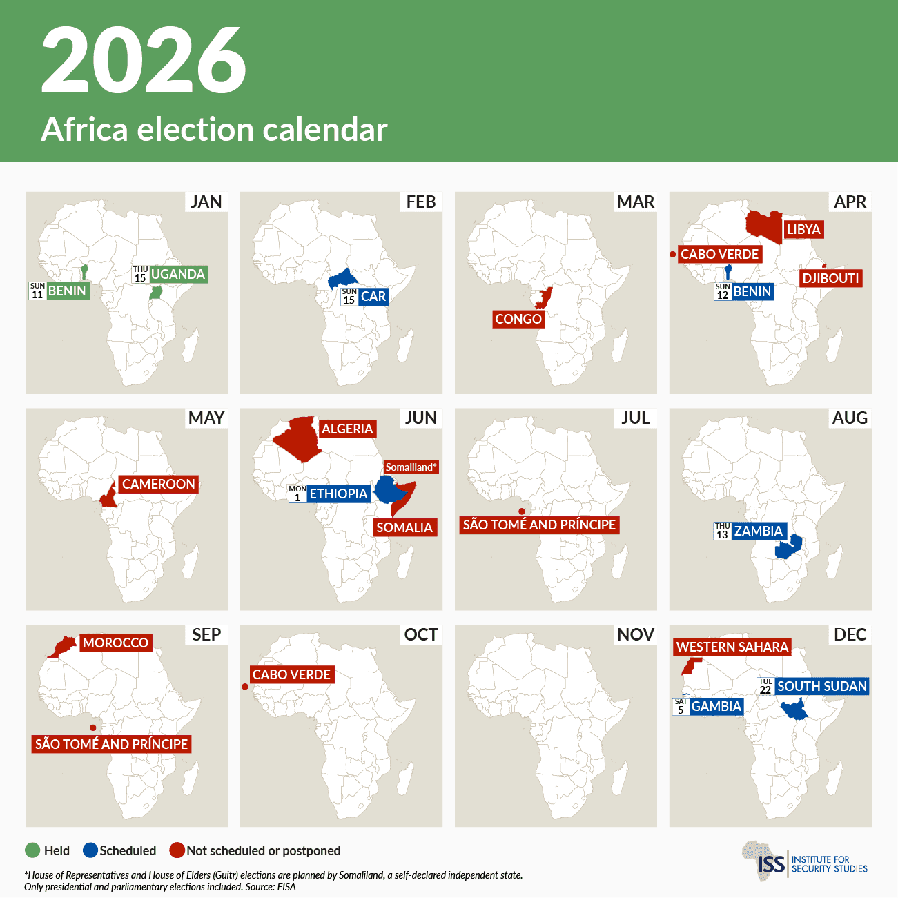 Africa elections 2026 Stay informed about elections taking place this year. Published on 21 January 2026 in Media / Infographics Share this: