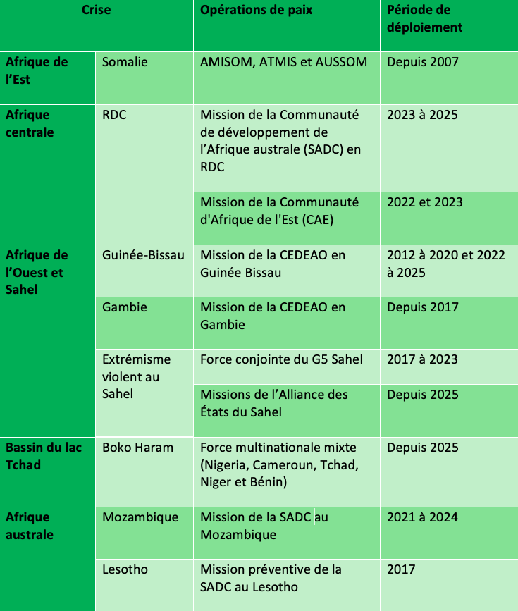 Interventions militaires de l’UA et des CER/MR entre 2015 et 2025